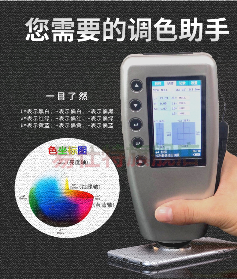 高精度色(se)差儀,廣泛應用于(yú)塑膠、印刷、油漆油(you)墨、紡織、印染✔️服裝(zhuāng)等行業的顔色管(guǎn)理領域,根據CIE色空(kōng)間的Lab,Lch原理,測量顯(xian)示出樣品♈與被測(ce)樣品的色差△E以及(ji) △Lab值。适合企業内⭐、外(wài)部色彩評價和數(shu)據管控。
