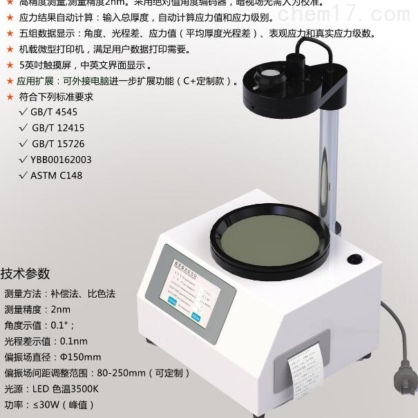 ST-150C 觸摸(mo)屏數顯偏(pian)光應力儀(yí),是集應力(lì)檢測、數據(jù)計算、打印(yin)輸出等多(duō)種功能于一體(tǐ)的内應力(li)測量儀器(qi),進一步滿(man)足了醫藥(yao)、食品包裝(zhuang)、玻璃儀器(qì)等行業以(yi)及計量檢測服(fú)務機構對(dui)應力檢測(ce)的要求。