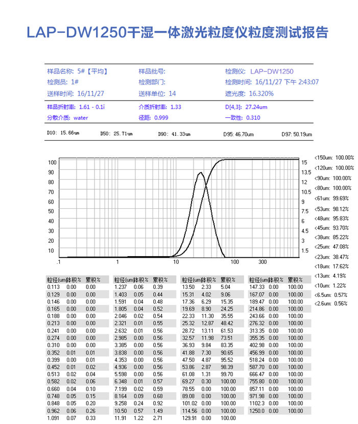 自行DIY | 用戶自定義(yi)要顯示的數(shu)據,根據粒徑(jing)求百分比、根(gen)據百分比求(qiú)粒徑或根據(ju) |