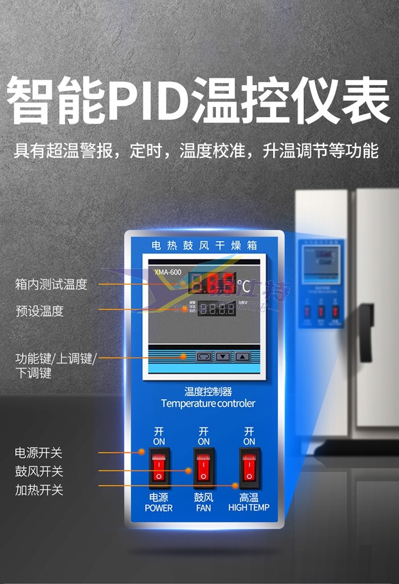溫控器:溫(wen)度控制器采(cǎi)用觸摸按鍵(jian)、數顯LED顯示、P.I.D智(zhì)能控制儀表(biǎo)