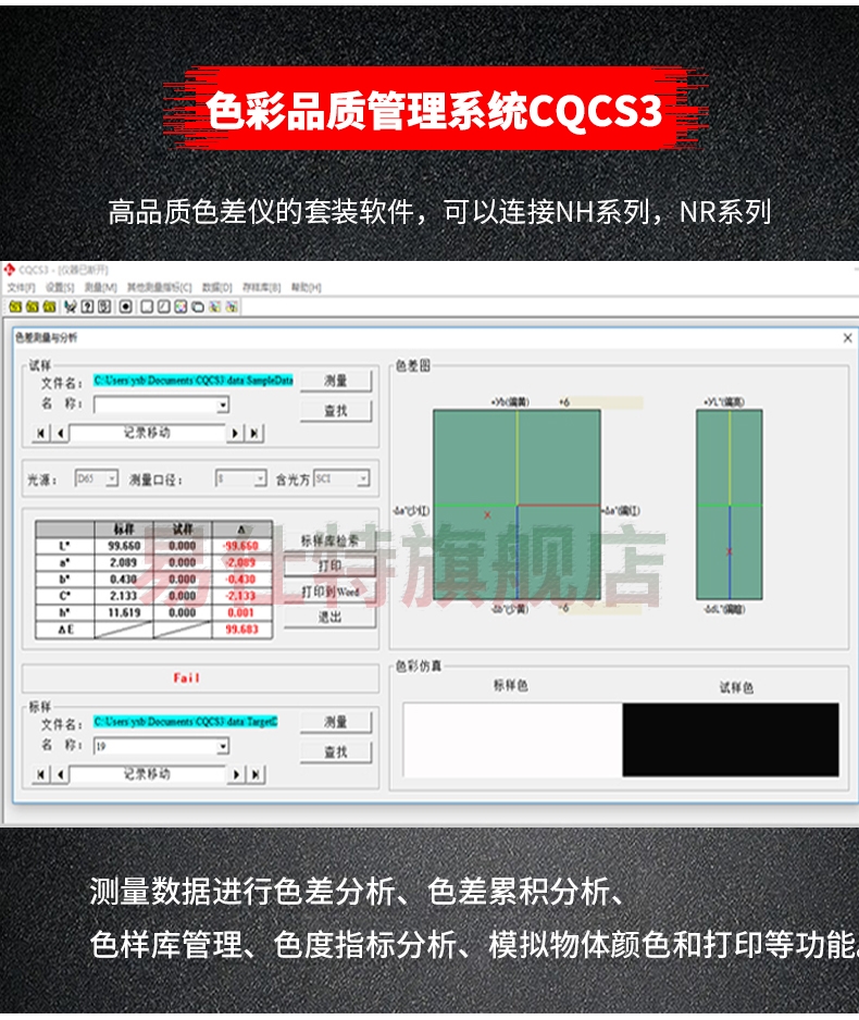 高精度色(se)差儀,廣泛應用于(yú)塑膠、印刷、油漆油(you)墨、紡織、印染✔️服裝(zhuāng)等行業的顔色管(guǎn)理領域,根據CIE色空(kōng)間的Lab,Lch原理,測量顯(xian)示出樣品♈與被測(ce)樣品的色差△E以及(ji) △Lab值。适合企業内⭐、外(wài)部色彩評價和數(shu)據管控。